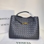 • Medium Intrecciato leather top handle bag with sliding cross-body strap • Compartmented interior with one zippered pocket, two open pockets • Magnetic closure