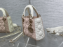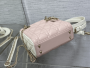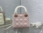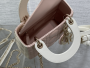 This is a classic Lady Replica Dior bag featuring quilted lambskin leather in a soft pink shade with white accents on the handles and sides. The design includes the signature cannage stitching, which creates the iconic quilted diamond pattern. The combination of pastel hues and gold-tone hardware exudes elegance and sophistication.