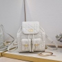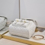 New for Cruise 2025, the Dior Caro backpack embodies modern and elegant style. Crafted in latte lambskin elevated by Macrocannage topstitching, the design features a flap adorned with an antique gold-finish metal CD signature that opens to reveal a drawstring main compartment, while a small flap pocket can hold all the essentials. The small backpack has a gold-finish handle and adjustable straps for added comfort.