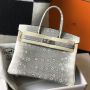 Replica Hermes Birkin Bag Lizard Leather Palladium Hardware In White/Grey