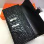 Replica Hermes Constance Wallet Alligator Leather Palladium Hardware In Black