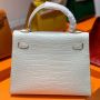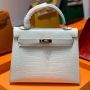 Replica Hermes Kelly Bag Alligator Leather Gold Hardware In White
