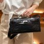 Replica Hermes Kelly Cut Clutch Alligator Leather Palladium Hardware In Black