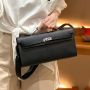 Replica Hermes Kelly Cut Clutch Epsom Leather Palladium Hardware In Black