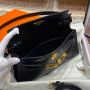 Replica Hermes Kelly Elan Bag Alligator Leather Gold Hardware In Black