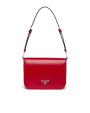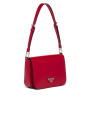 Elegance and practicality meet in this bag with a hybrid character that combines sleek and modern lines, functionality, and fine materials. Made of Prada's iconic brushed leather, a material that is as chameleonic as it is luxurious, this rigid, curvy bag is characterized by its flap closure and leather shoulder strap that is adjustable for wear as a crossbody or shoulder bag. Decorating the flap is the emblematic enameled metal triangle logo