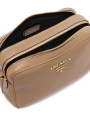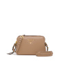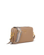 Compact in design, this leather shoulder bag has two detachable adjustable shoulder straps in leather and fabric.