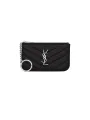 Zip top key pouch with Replica Saint Laurent signature engraved key ring on gourmette chain, metal Cassandre and matelassé stitching.