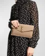 Replica Saint Laurent small pouch bag in powder-grain calf leather to carry as a clutch.