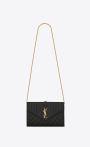 Replica YSL Envelope Chain Wallet In Mix Matelasse Grain De Poudre Embossed Leather Black