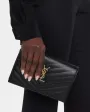 Replica Saint Laurent wallet in chevron-quilted grain leather