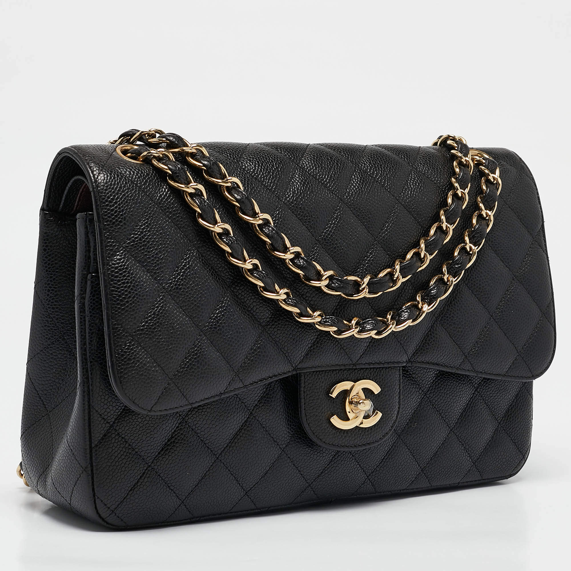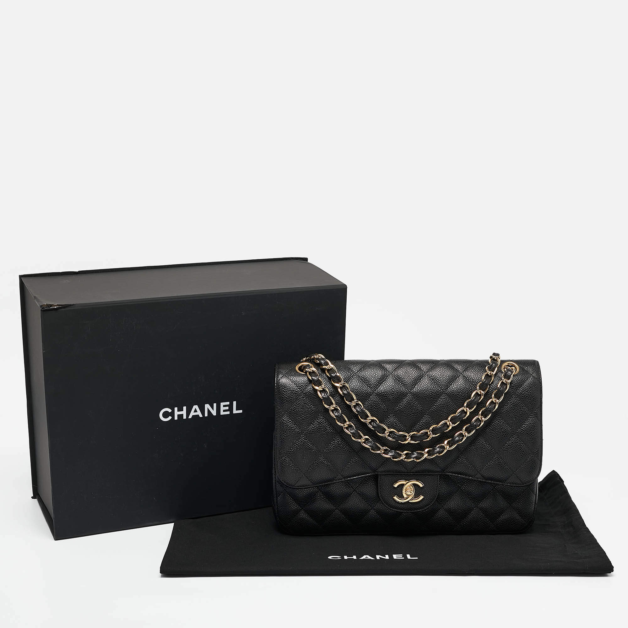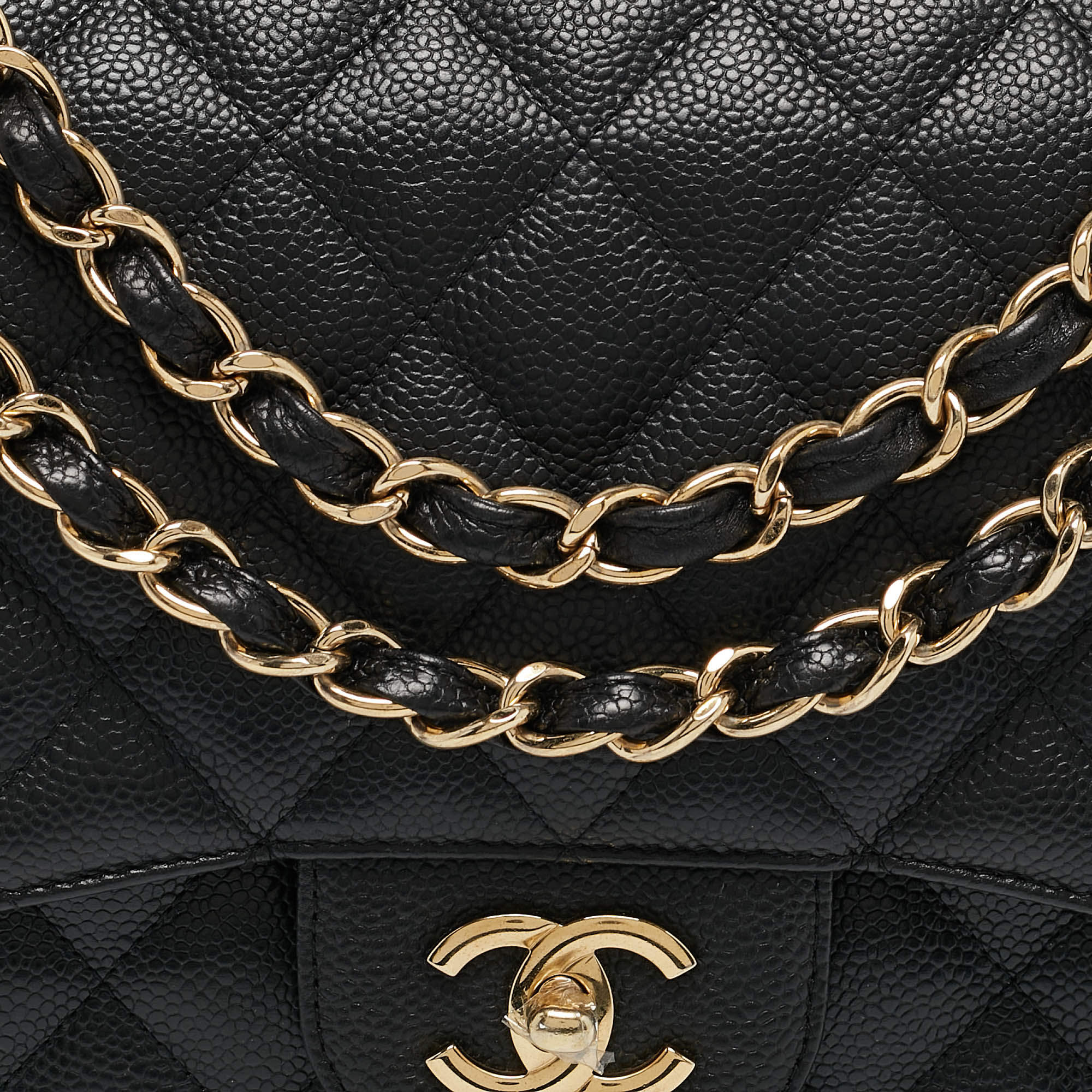 Replica Chanel Black Quilted Caviar Leather Jumbo Classic Double Flap Bag