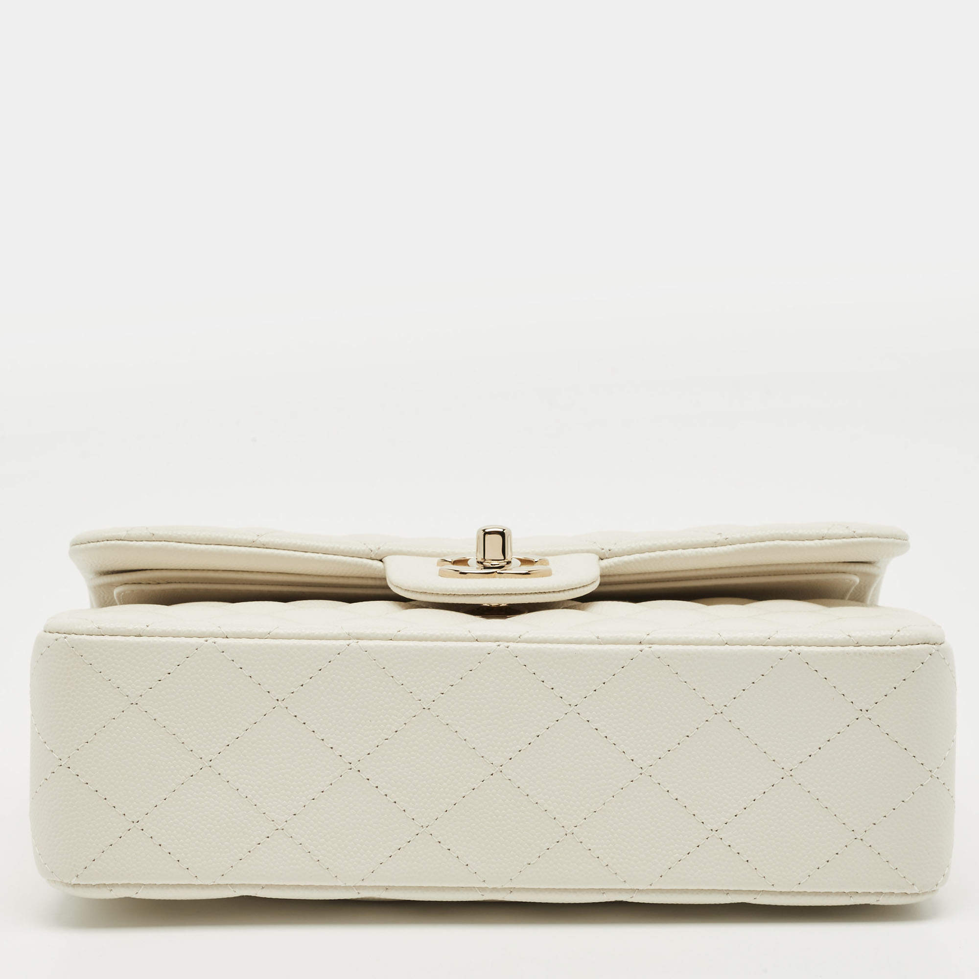 Replica Chanel Off White Quilted Caviar Leather Small Classic Double Flap Bag