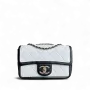 Replica Chanel Seasonal Flap - 23CM Quilted Lambskin Bi-Color White Black Gold Hardware Series 19